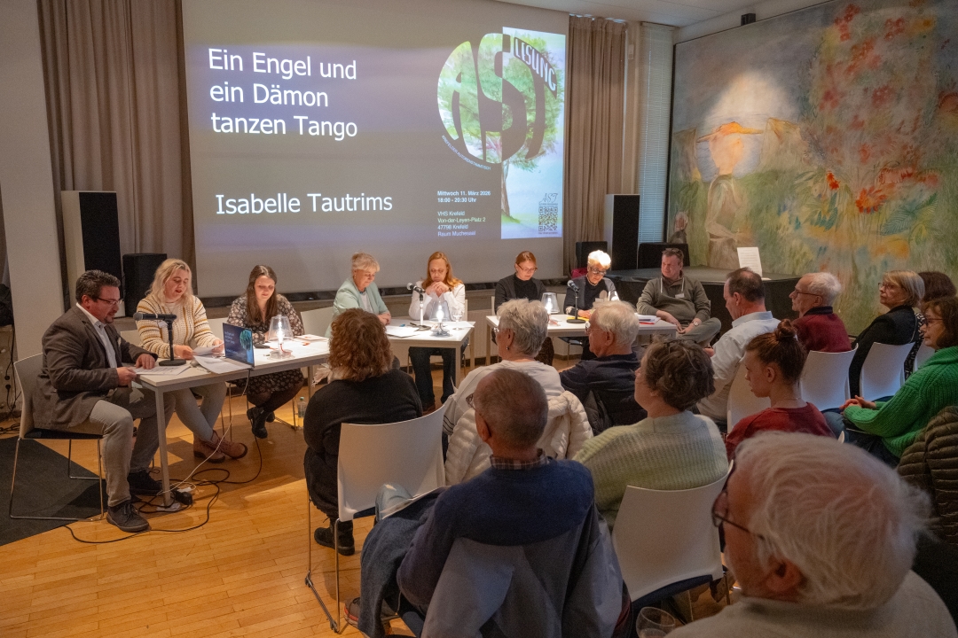 | Der doppelte März – Nach der großen Lesung in der VHS Krefeld am 11. März 2026 war der Krefelder AST zwei Tage später in Wachtendonk zu Gast ![]() Am Mittwoch, 11. März 2026, lud der AST in die VHS Krefeld ein – dorthin, wo alles begann. Mit knapp 60 Zuhörerinnen und Zuhörern war der Muchesaal zur Freude des AST komplett gefüllt. Acht Autorinnen und Autoren stellten abwechselnd ihre Kurzgeschichten, Hörspiele, Gedichte und mal mehr und mal weniger wahre Anekdoten aus ihrem Leben vor. Nachdem die Krefelder Gruppe 2025 die ersten, kleinen Lesungsversuche gestartet hatte, war das nun „die Große“ – Mikros, Catering vom Kulturcafé Paris, 28 verschiedene Texte und mehr als doppelt so viele Zuhörende als zuvor. Danke für diesen schönen Abend! ![]() Zwei Tage später ging es dann für sechs Stammtischmitglieder wieder auf Einladung nach Wachtendonk ins Haus Püllen. Ein Freitag, der 13., der vor einer kleineren, aber ebenso interessierten Zuhörerschaft statt abergläubiges Unglück verschiedene Texte mit sich brachte: Von frühlingshafter Vorfreude über zum Nachdenken anregende Lebenswege bis zu humorvollen Dialogen war wieder alles dabei. Bei der Veranstaltung kamen 125 EUR im Spendenhut für die „Schlauen Löffel“ zusammen, die im Anschluss von Sigrid Bongartz auf glatte 200 EUR aufgestockt und übergeben wurden. Herzlichen Dank! ![]() |